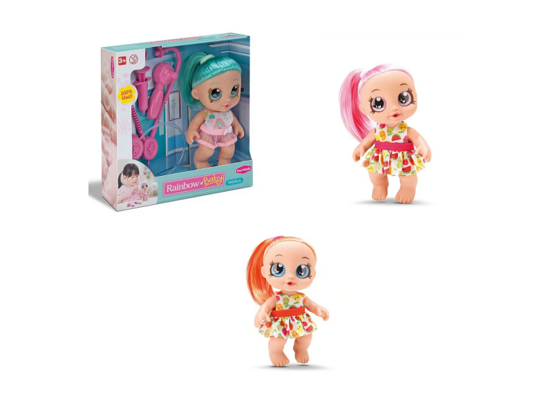 A Rainbow é uma boneca super estilosa que vai encantar as pequenas! Com diversas versões com frutinha (morango e laranja) e a médica. Ela é super fofa, gostosa de abraçar e apertar, feita em vinil macio e rica em detalhes. Na versão médica acompanha estetoscópio, otoscópio e seringa!