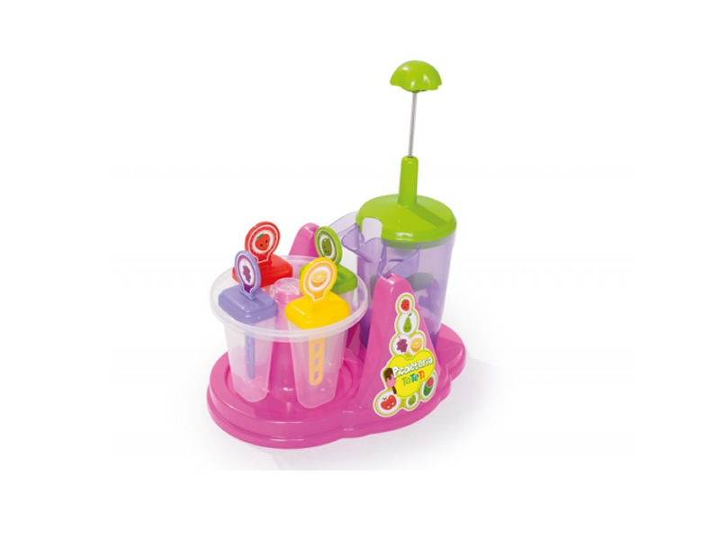 A Picoleteria vem com 4 palitinhos coloridos laváveis, forma e copo misturador. É só misturar frutas com iogurte ou suco! Fazer picolé virou brincadeira!
