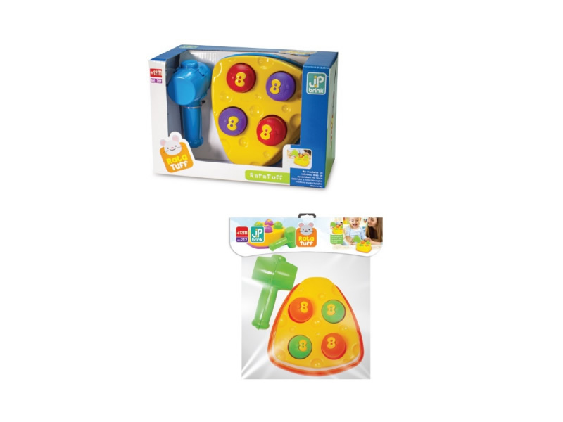 O Rata Tuff vai divertir, entreter e estimular os sentidos dos bebês. Percepção visual com cores vibrantes que desenvolvem a visão e prendem a atenção dos bebês. Ajuda no desenvolvimento da memória e imaginação. Auxilia a coordenação motora ajudando os bebês a usarem as mãozinhas com mais destreza para movimentos precisos. Raciocínio e resolução de problemas estimula o bebê a desenvolver habilidades de raciocínio a medida que tem que bater o martelo para a bolinha abaixar. Constrói confiança e pensamento independente.